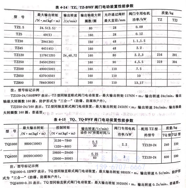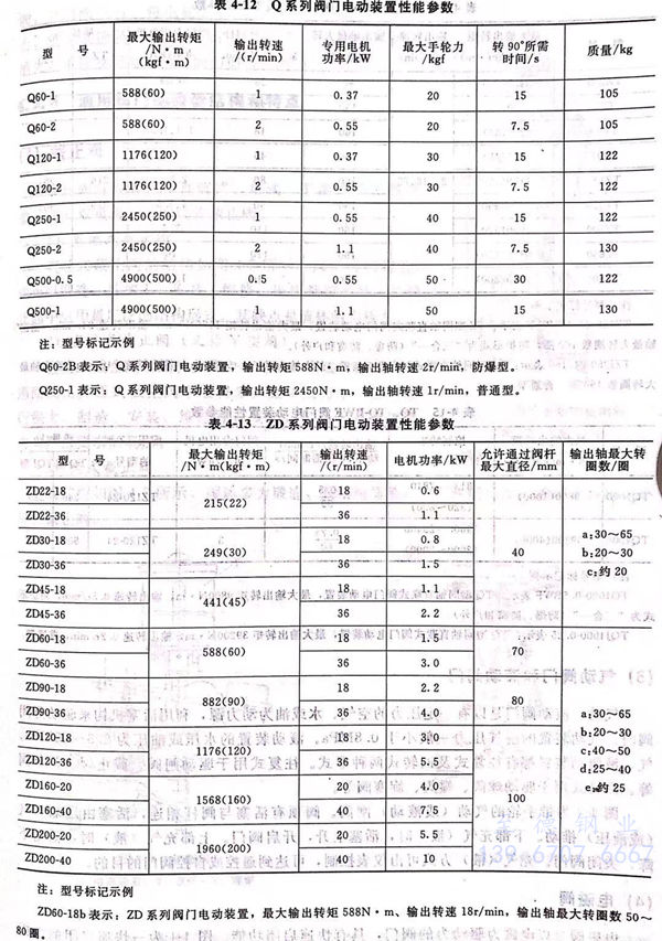 閥門電動(dong)裝置型號與(yu)性能參數(shu),見表(biao) 4-11~表(biao)4-15。