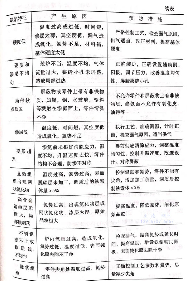 不銹鋼離子滲(shen)氮(dan)常(chang)見缺陷(xian)及解決辦法見表7-5.