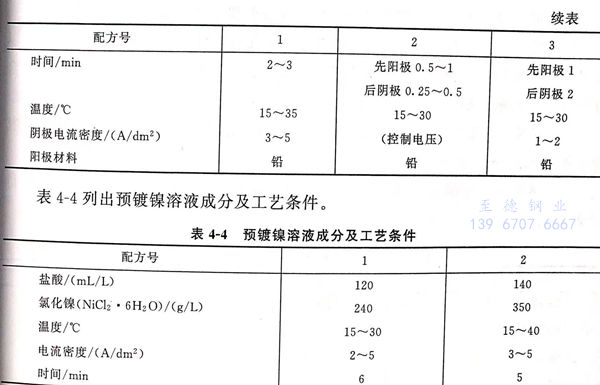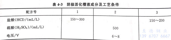 表4-3列出了陰極活化槽溶液(ye)成(cheng)分(fen)及工藝條件。