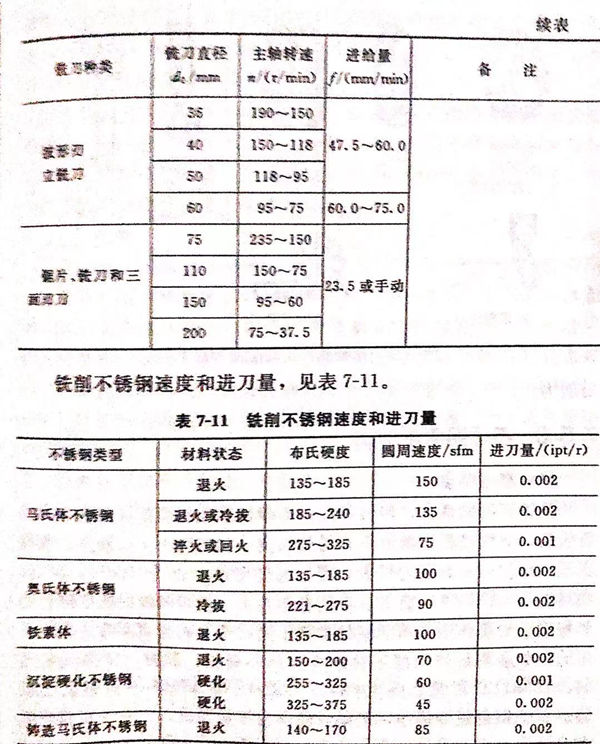高速(su)鋼銑刀的(de)切削用(yong)量見表7-10。