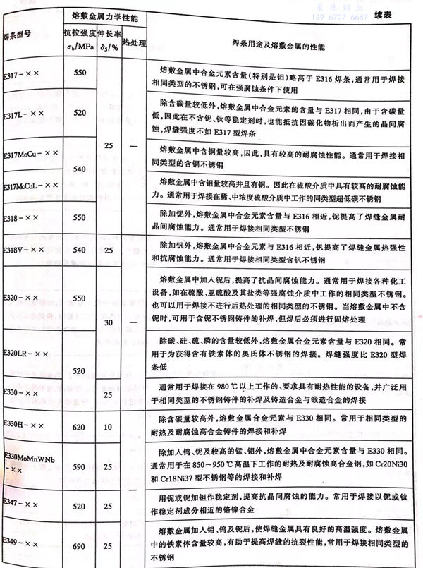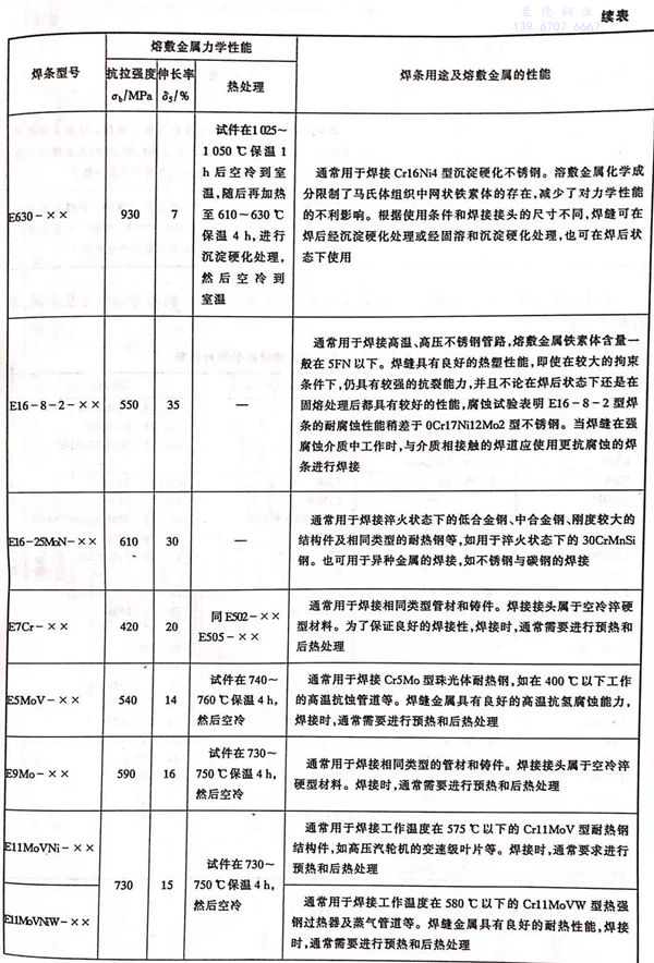 各(ge)型號(hao)不銹(xiu)鋼(gang)焊條的力學性(xing)能和主要(yao)用途見表(biao) 5-5 。