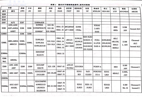國內外不銹(xiu)鋼焊條牌(pai)號、型號對照表見(jian)附表 1.
