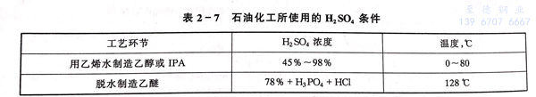 在石油化工(gong)中(zhong)使(shi)用(yong)的(de)(de)硫酸濃度范圍變化很大,溫度可(ke)達(da)100℃左右,一些(xie)工(gong)藝(yi)環(huan)節使(shi)用(yong)硫酸的(de)(de)濃度和溫度條件見表2-7.可(ke)按化學(xue)工(gong)業硫酸工(gong)業中(zhong)的(de)(de)材(cai)料使(shi)用(yong)原(yuan)則(ze)進(jin)行選擇(ze)。