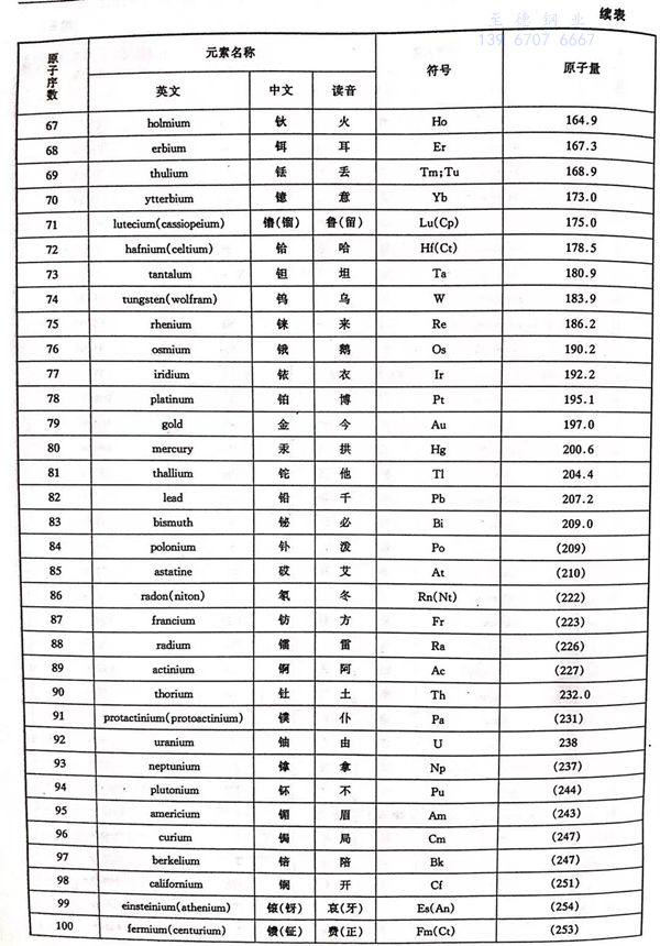 化學元素名稱、英文、中文、符號、原子量和原子序(xu)列 對(dui)照(zhao)表