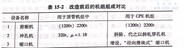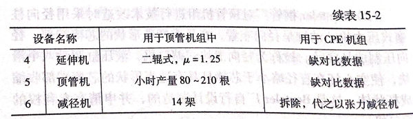 Siegen Weidenau 的 Benteler 香蕉視頻app蘋果:不銹鋼管廠的頂管機組于1985年進行了技術改造,采用CPE軋管工藝,改造前后的機組組成列表對比如表15-2所示。