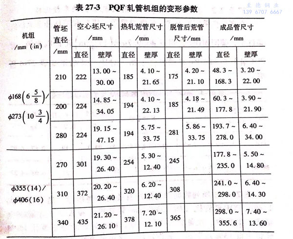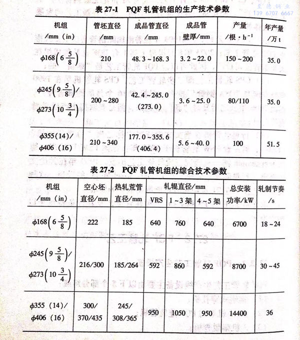 現(xian)將 φ168mm、φ245mm/ф273mm 及 φ355mm/ф406mm PQF軋管機組的(de)生(sheng)產技(ji)(ji)術參數(shu)、綜合技(ji)(ji)術參數(shu)以(yi)及變形參數(shu)分(fen)別列表27-1~表27-3予以(yi)說明。
