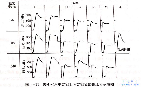將黏度(du)變化方(fang)案(an),結合施加潤滑劑的方(fang)式包括在內總共試(shi)驗了(le)7種擠壓方(fang)案(an),詳見表4-14。