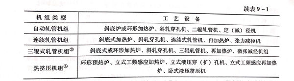 各種制管機組(zu)的工藝設備配置件表 9-1