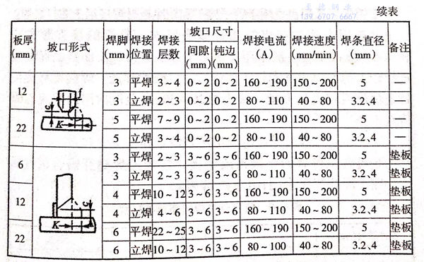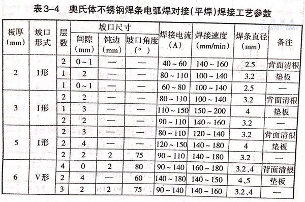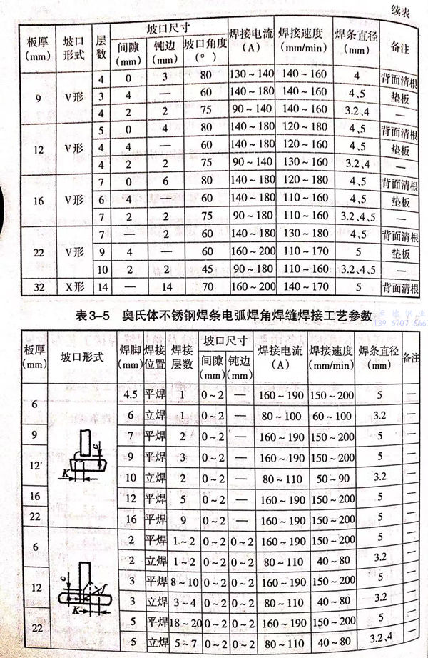 奧氏(shi)體不銹鋼焊(han)條電弧焊(han)對接焊(han)縫及角焊(han)焊(han)縫焊(han)接工藝(yi)參(can)數見表 3-4 和 表 3-5。