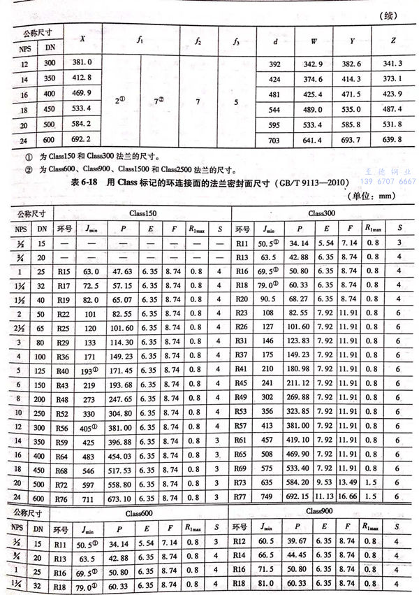 3. 用 Class 標記(ji)的整體鋼制管(guan)法蘭(lan)密(mi)封(feng)面(mian)(包括突面(mian)、凹凸面(mian)及榫槽密(mi)封(feng)面(mian))尺(chi)(chi)寸(cun)見(jian)圖6-8~圖6-10及表6-17;用Class標記(ji)的環連接(jie)面(mian)的法蘭(lan)密(mi)封(feng)面(mian)尺(chi)(chi)寸(cun)見(jian)圖6-11及表6-18。