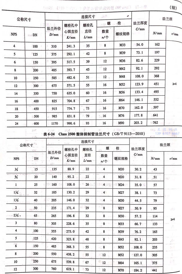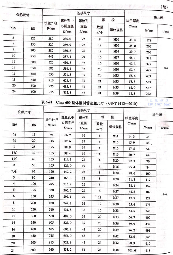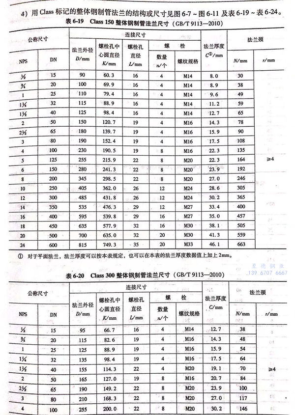 4. 用 Class 標(biao)記的整體鋼制管法蘭(lan)的結(jie)構或(huo)尺寸見圖 6-7~圖 6-11 及表 6-19 ~表 6-24。