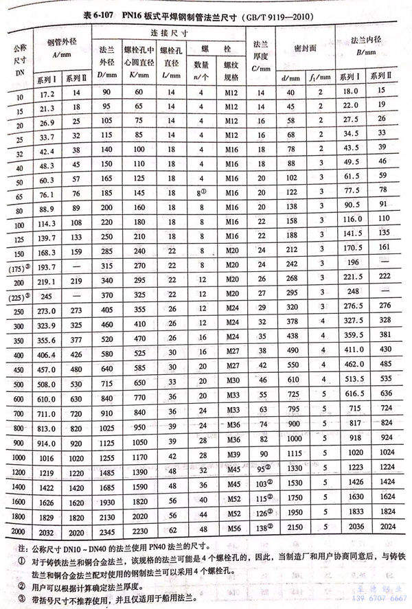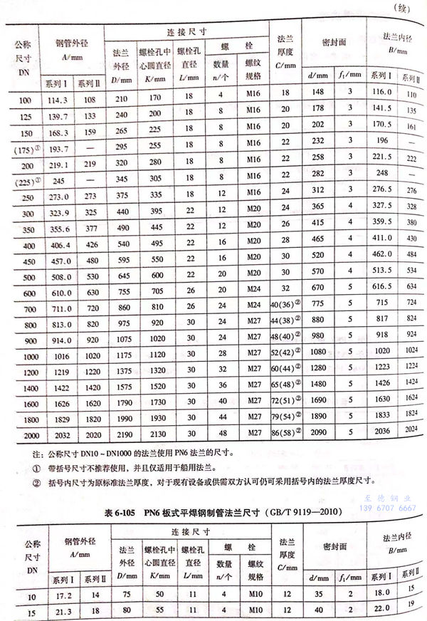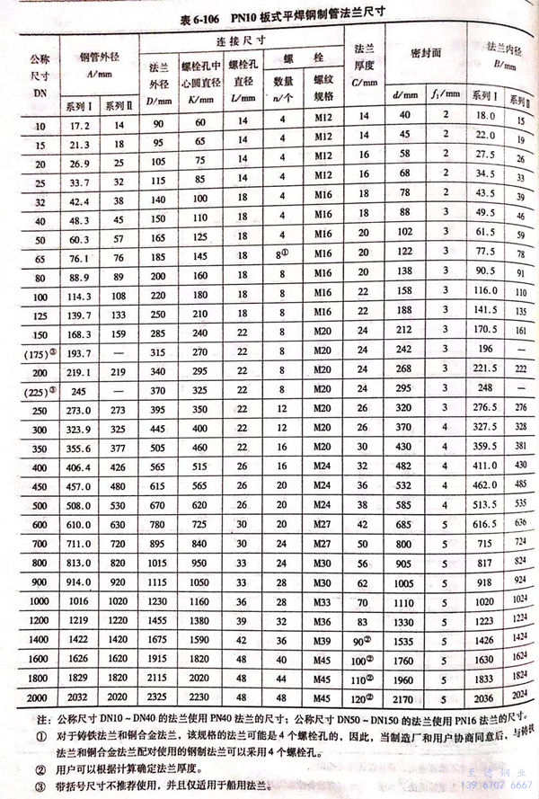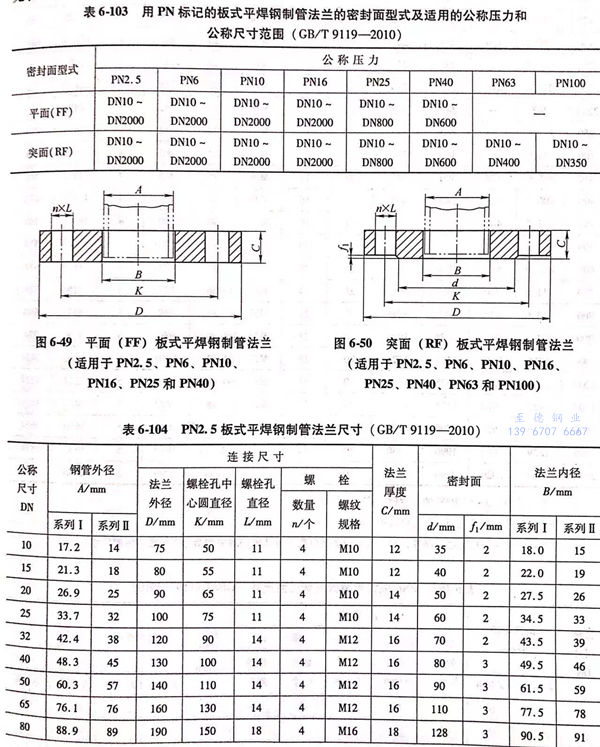 用PN標記的(de)(de)(de)板(ban)式(shi)平焊鋼制管(guan)法(fa)蘭(lan)的(de)(de)(de)密封面型式(shi)及(ji)適用的(de)(de)(de)公稱壓力和(he)公稱尺寸范圍見表(biao)6-103;用PN標記的(de)(de)(de)板(ban)式(shi)平焊鋼制管(guan)法(fa)蘭(lan)的(de)(de)(de)型式(shi)如圖6-49、圖6-50所示(shi),法(fa)蘭(lan)的(de)(de)(de)結構尺寸見表(biao)6-104~表(biao)6-111。