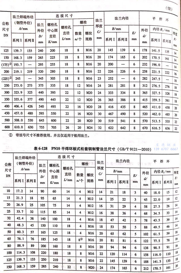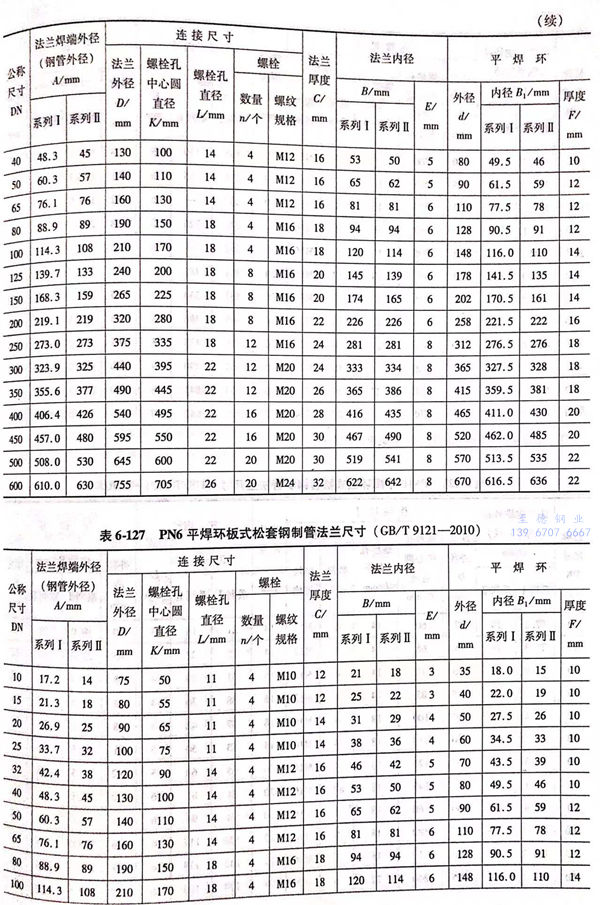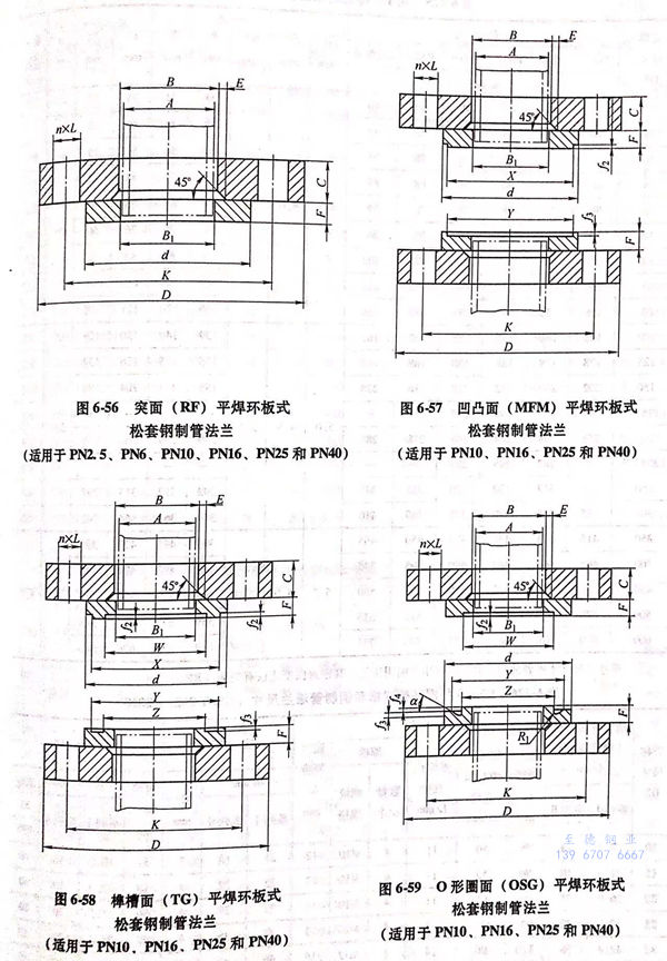 用PN標記的(de)(de)(de)(de)平焊(han)環(huan)板(ban)式(shi)(shi)松套鋼制(zhi)管法蘭(lan)的(de)(de)(de)(de)密封面型式(shi)(shi)及(ji)適用的(de)(de)(de)(de)公稱壓力(li)和公稱尺寸(cun)范(fan)圍(wei)見表(biao)(biao)(biao)6-124;用PN標記的(de)(de)(de)(de)平焊(han)環(huan)板(ban)式(shi)(shi)松套鋼制(zhi)管法蘭(lan)的(de)(de)(de)(de)型式(shi)(shi)如(ru)圖6-56~圖6-59所示(shi),法蘭(lan)密封面尺寸(cun)見表(biao)(biao)(biao)6-125,法蘭(lan)的(de)(de)(de)(de)結構尺寸(cun)見表(biao)(biao)(biao)6-126~表(biao)(biao)(biao)6-131。