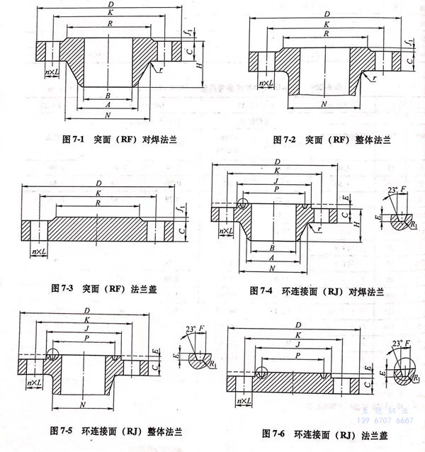 B 系列大直徑鋼制管法蘭的尺寸見圖 7-1~圖 7-3 及表 7-6~表 7-10。
