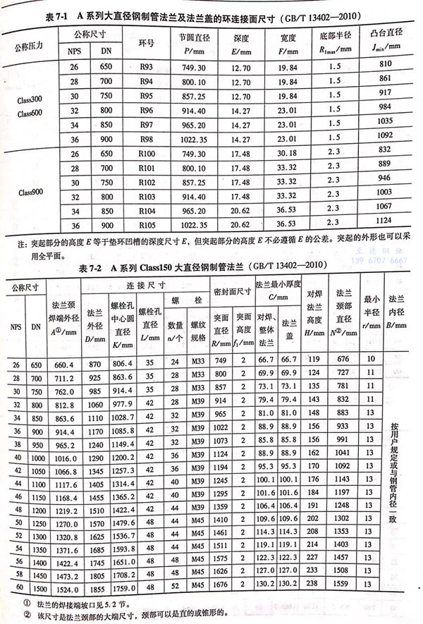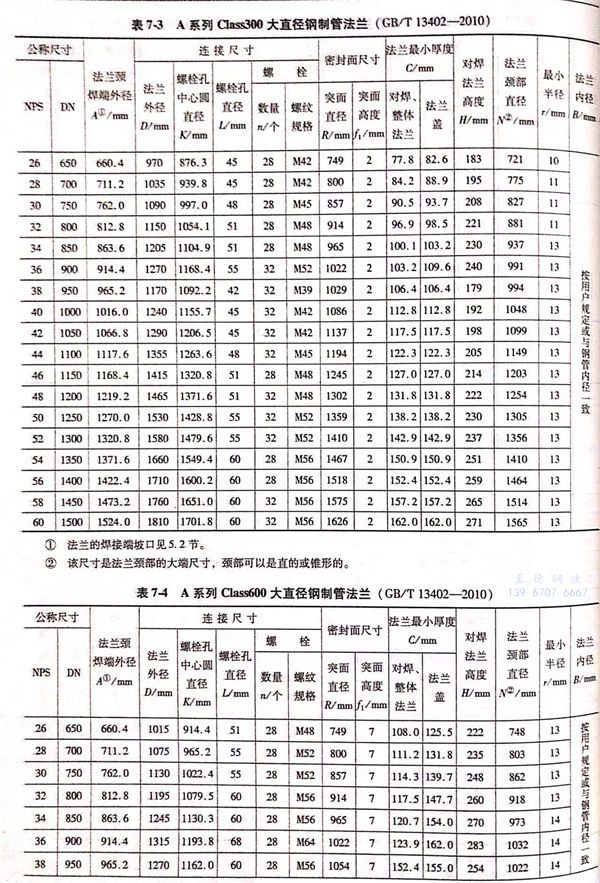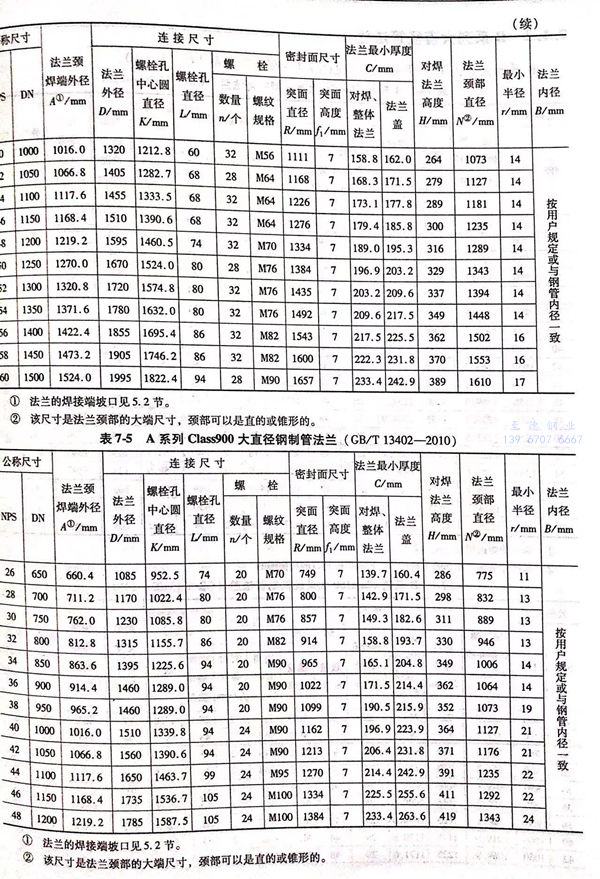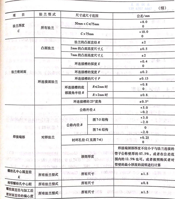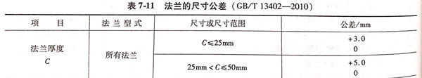不銹鋼法(fa)蘭的尺寸公差見(jian)表(biao) 7-11 。