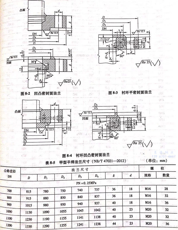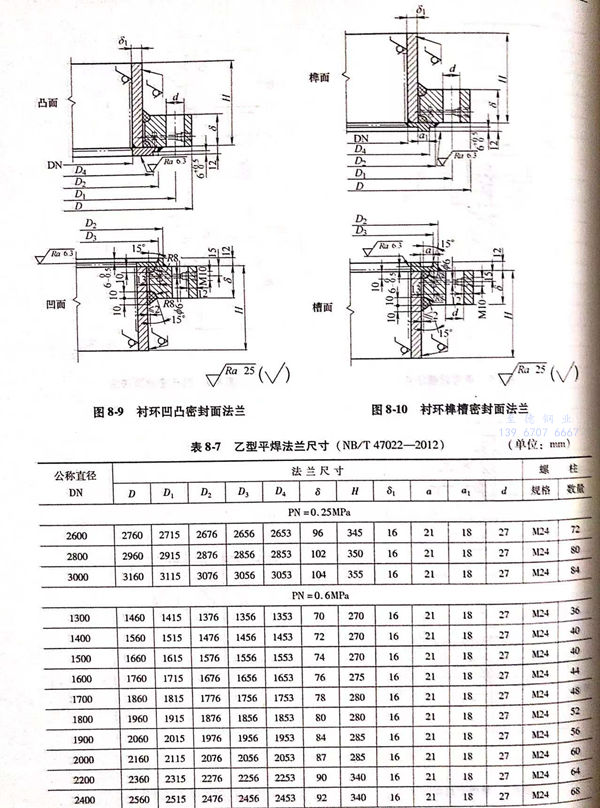 5. 襯環凹(ao)凸密封面法蘭的結構型式如圖8-9所示,尺寸見表8-7。