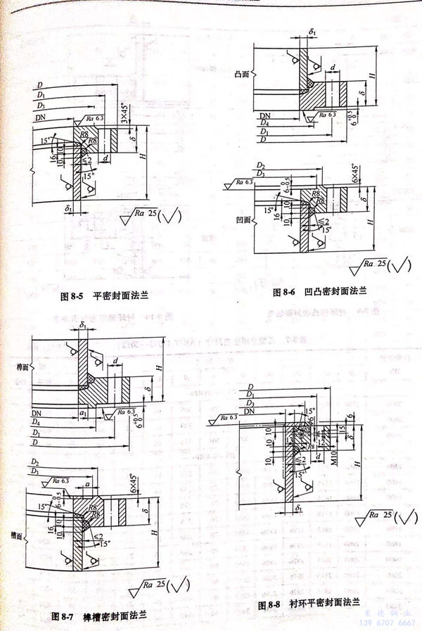 1. 平密封(feng)面法蘭的結構型式(shi)如(ru)圖8-5所示,尺(chi)寸見表8-7。