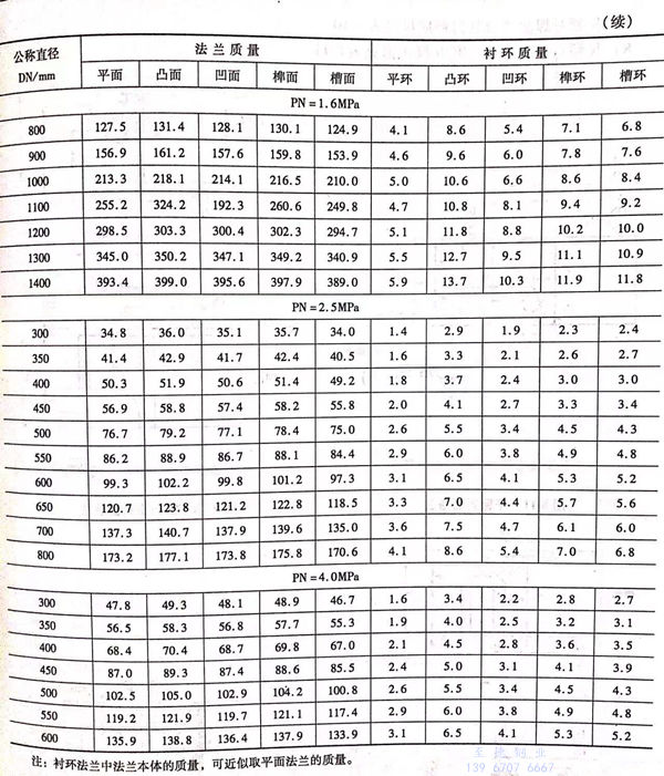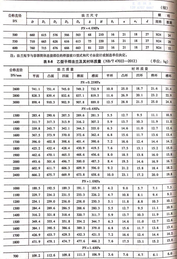 7. 乙型平焊法蘭(lan)與襯環質量見表8-8。
