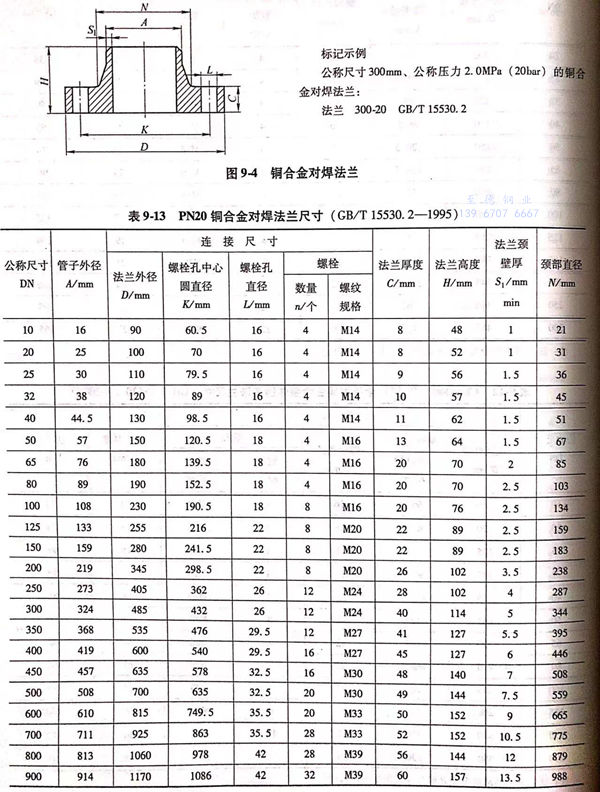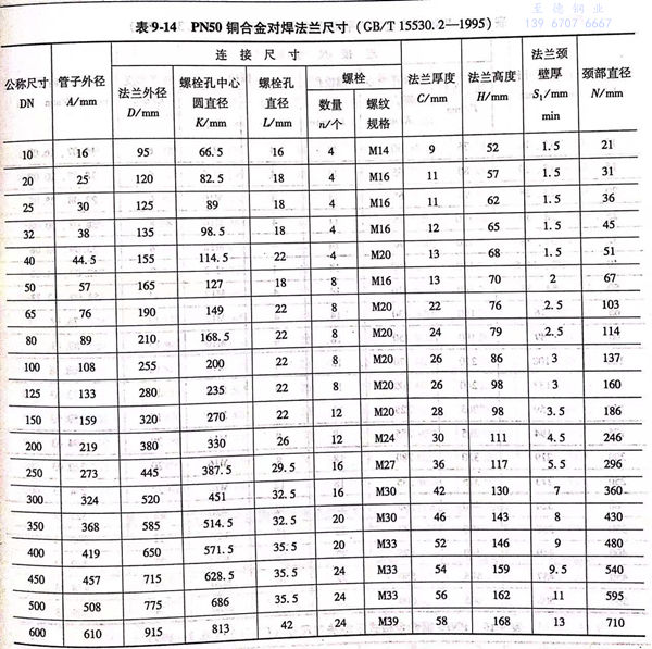 銅合金對焊法(fa)蘭的型式(shi)與(yu)尺寸見(jian)圖 9-4 和表 9-13、表 9-14。