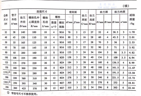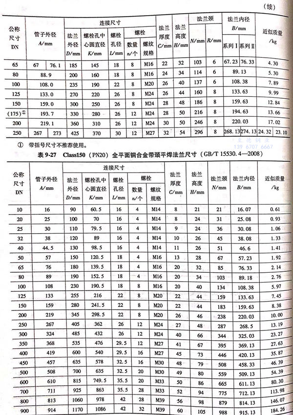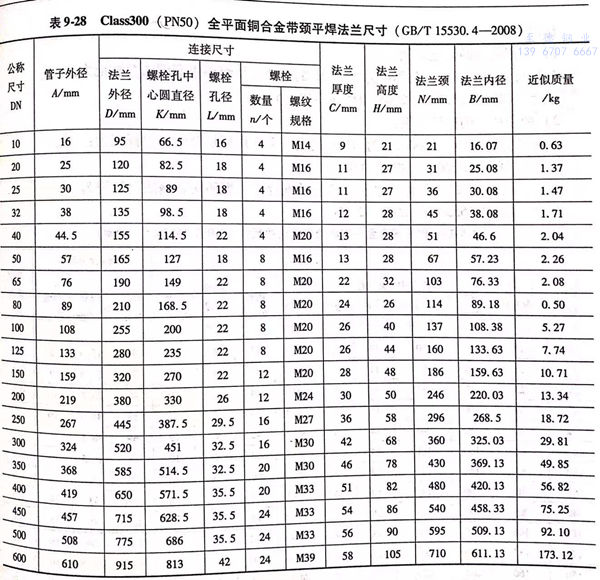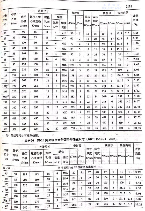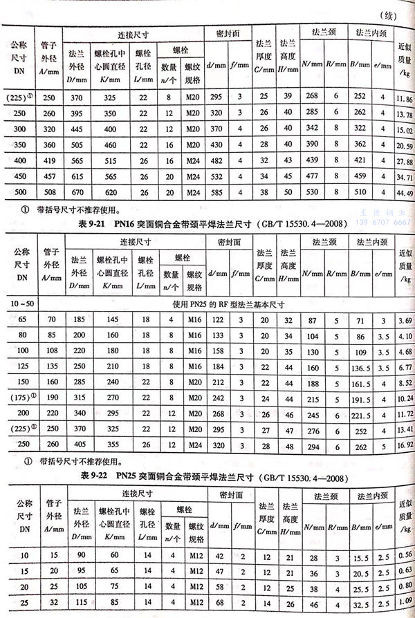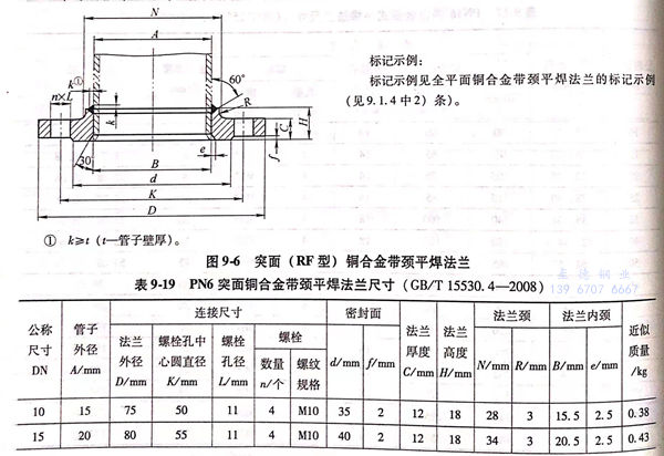 突面(mian)(RF)銅合(he)金帶頸平焊法蘭的型式與尺寸見圖(tu) 9-6 和表 9-19~表9-22。