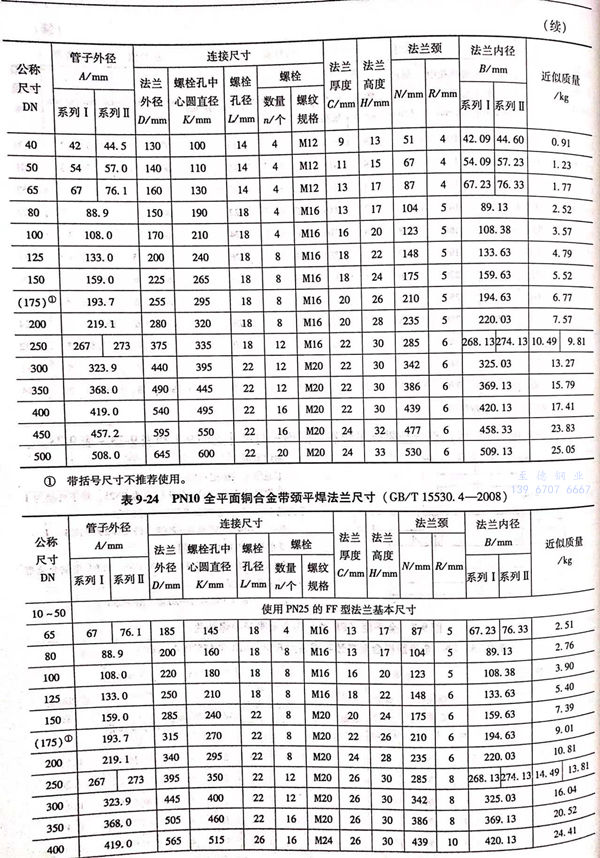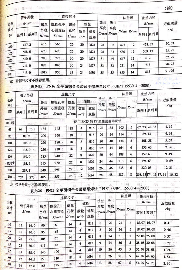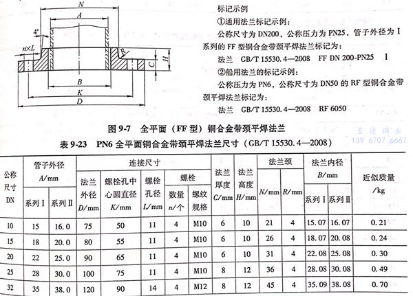 全平面(mian)(FF型(xing))銅合金(jin)帶頸(jing)平焊法蘭的(de)型(xing)式(shi)與尺(chi)寸見圖 9-7 和表(biao) 9-23~表(biao) 9-28。