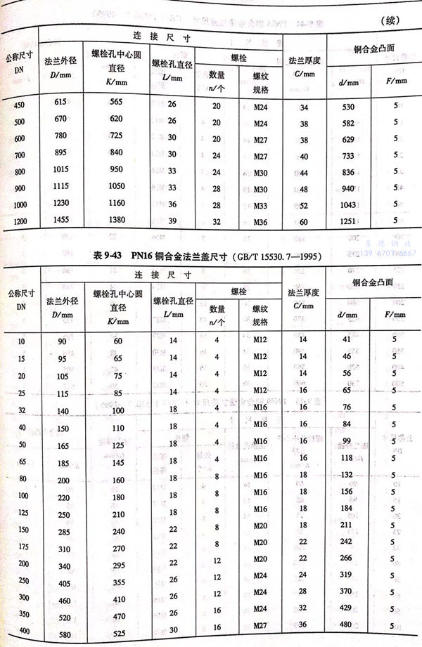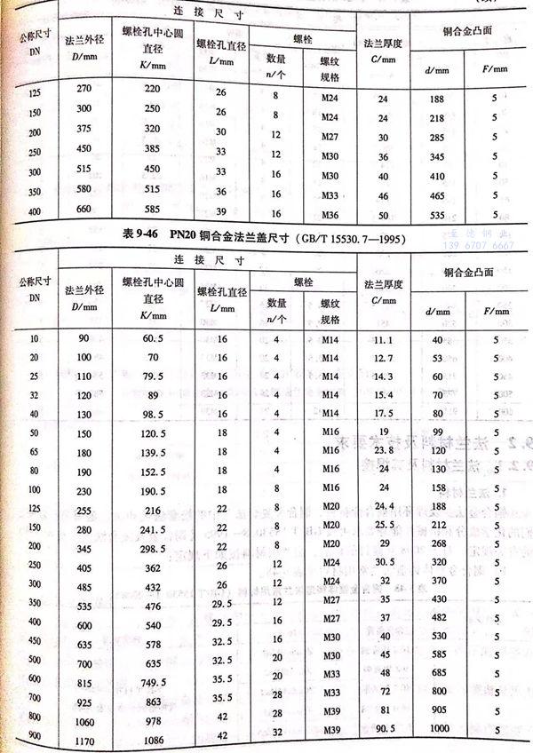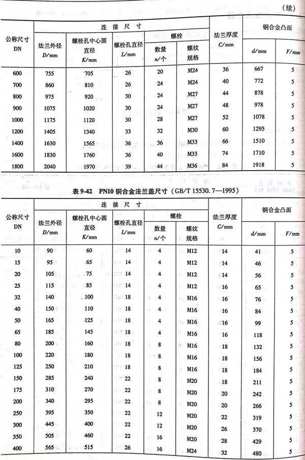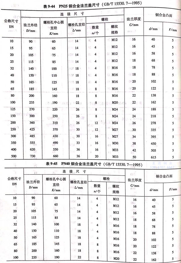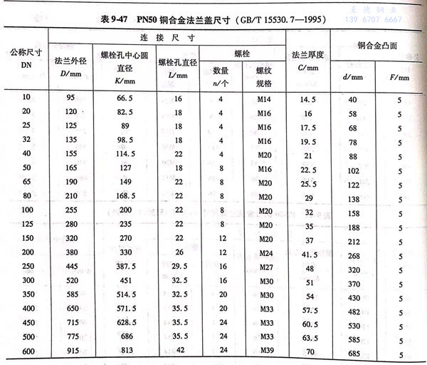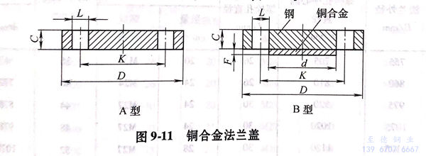 銅合金法蘭蓋(gai)的型式(shi)與尺寸見圖9-11和表9-41~表9-47.