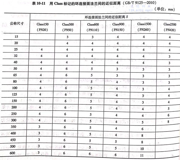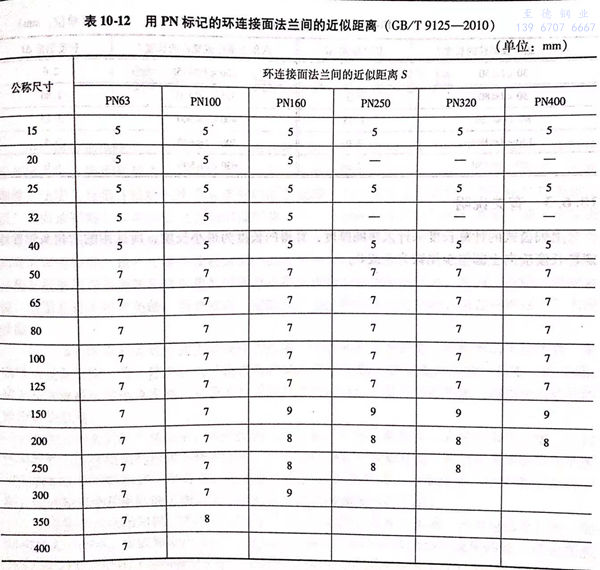 S-環連接(jie)面(mian)法(fa)蘭間近似距離,數值按表10-11或表10-12(或相應的(de)法(fa)蘭標準)確定(ding),單位為毫米(mm);