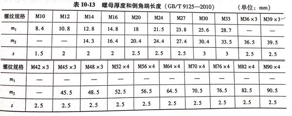 m-螺(luo)母(mu)最大厚(hou)度(du),數值按表10-13確定,與螺(luo)栓配合時(shi)用m1,與螺(luo)柱配合時(shi)用m2,單(dan)位(wei)為毫米(mm);
