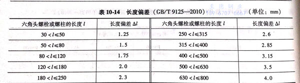 4. 六角螺(luo)栓或螺(luo)柱(zhu)的長度偏差見表(biao) 10-14。