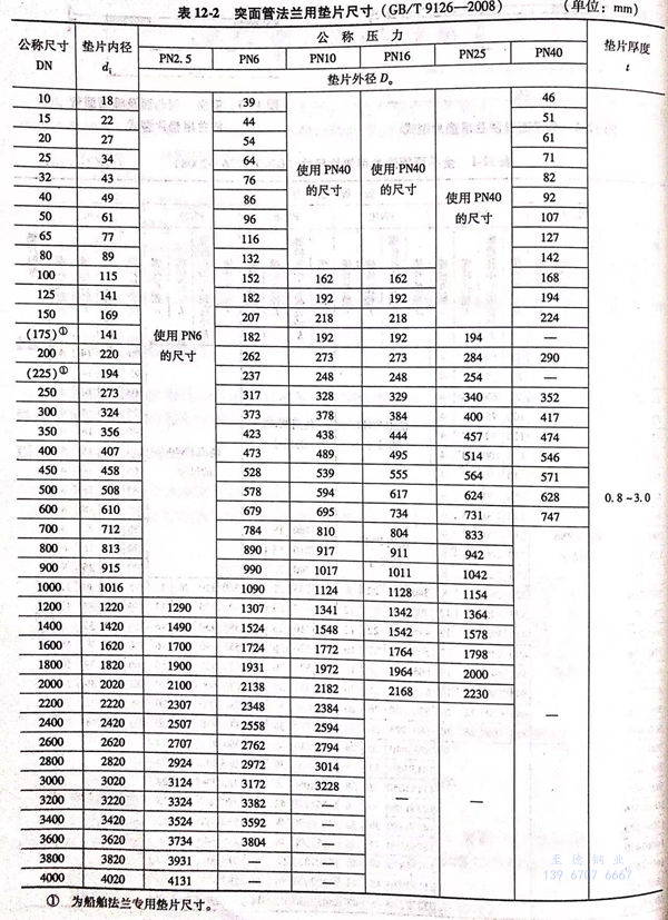 b. 突面管(guan)法蘭用墊片的型(xing)式如圖(tu)12-3所示,尺寸見表12-2.