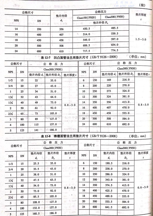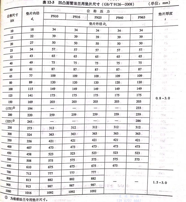 c. 凹(ao)凸管法蘭(lan)用墊(dian)片的型式如圖12-3所示,尺寸見表12-3.