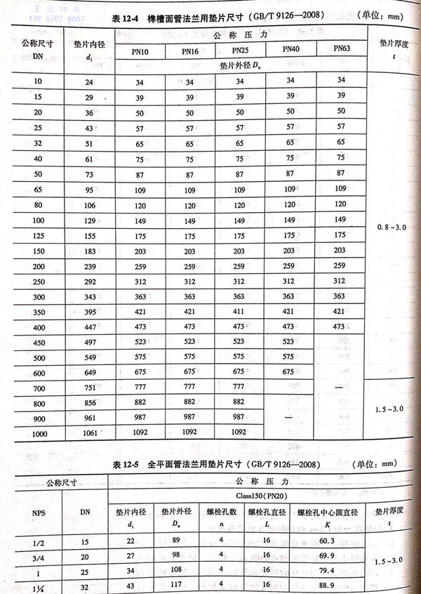 a. 全(quan)平(ping)面管法蘭用墊片的型式如圖12-2所(suo)示,尺寸見表12-5.
