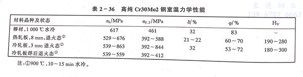 高純Cr30Mo2、008Cr30Mo2、447J1不銹(xiu)鋼的(de)化學成分表(biao)2-35。