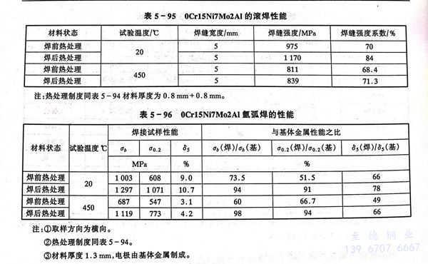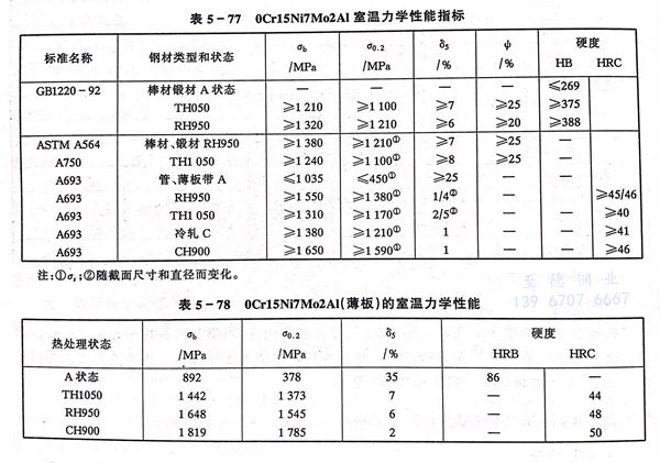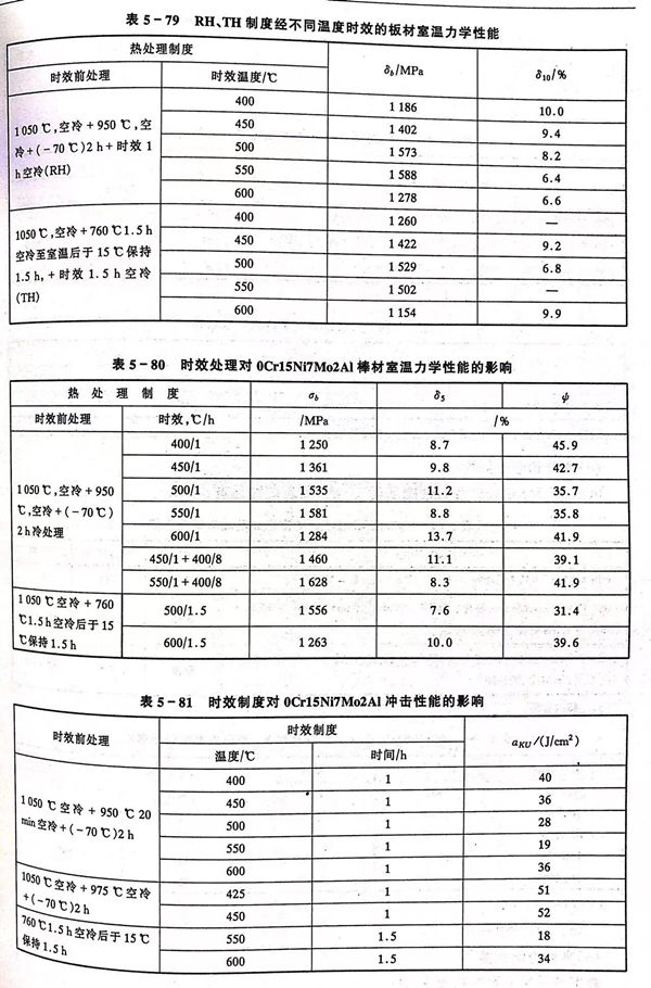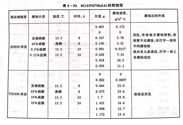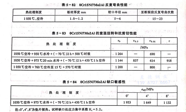 07Cr15Ni7Mo2Al、PH15-7Mo 不銹鋼的化學成分(fen)見表(biao)5-76。