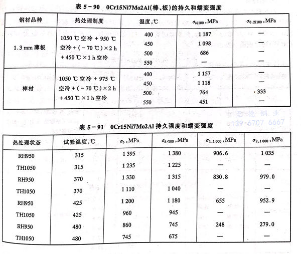 07Cr15Ni7Mo2Al、PH15-7Mo 不(bu)銹鋼的持久和蠕變行為(wei)見表(biao) 5-90 和 表(biao) 5-91 及圖 5-23 。