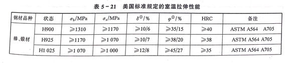 05Cr15Ni5Cu4Nb、0Cr15Ni5Cu3Nb、15-5PH 不銹鋼的化學成分見表5-20。