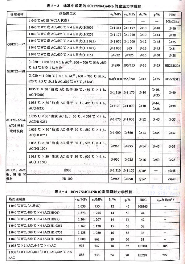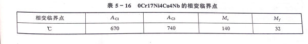 0Cr17Ni4Cu4Nb、05Cr17Ni4Cu4Nb、17-4PH 不(bu)銹(xiu)鋼的相變(bian)臨界點列(lie)于表5-16。熱處理制度見表5-17。