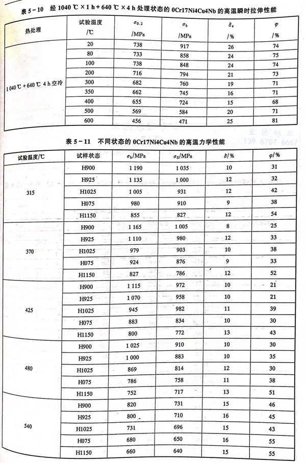 0Cr17Ni4Cu4Nb、05Cr17Ni4Cu4Nb、17-4PH 銹鋼的(de)高溫(wen)瞬時拉伸性能見表5-10、表5-11和圖5-6。