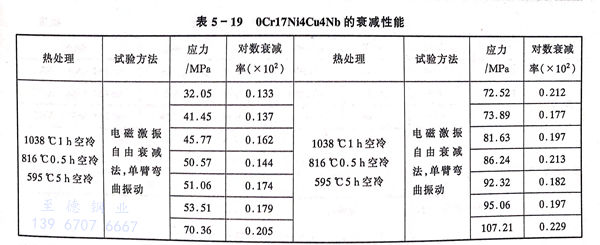 0Cr17Ni4Cu4Nb、05Cr17Ni4Cu4Nb、17-4PH 不銹(xiu)鋼的(de)物理性(xing)能見表 5-18 。衰減性(xing)能見表 5-19 。