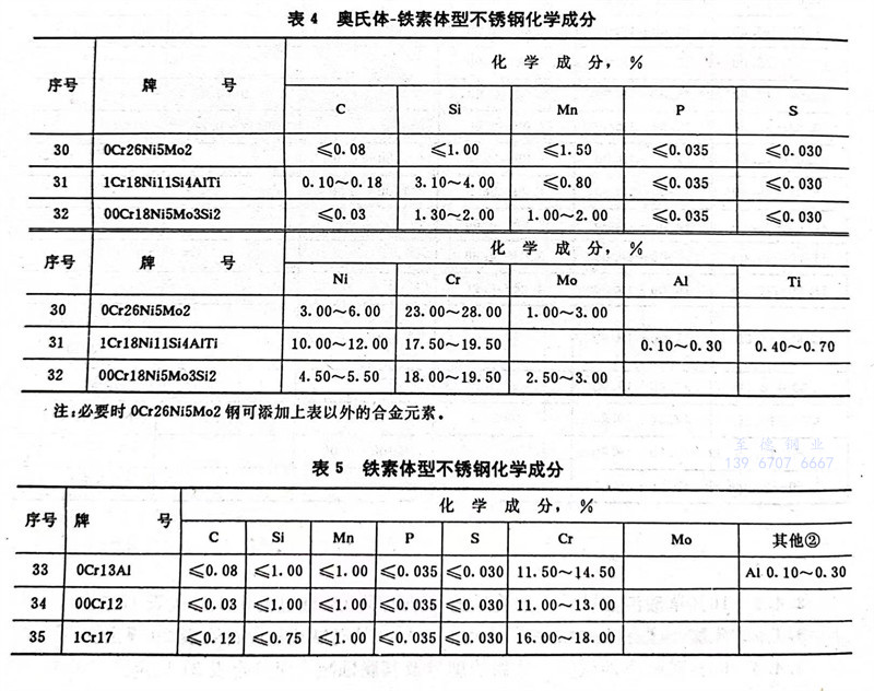 表4 奧氏體-鐵素體型不(bu)銹鋼化學成(cheng)分
