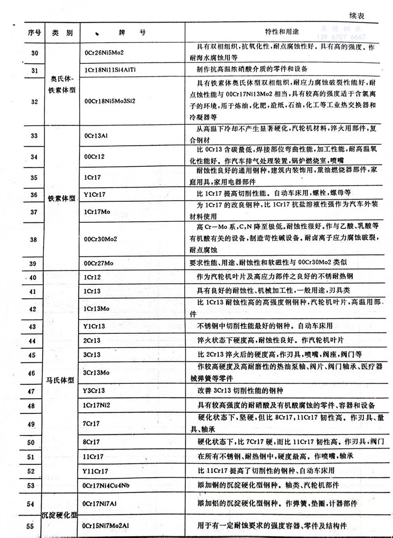附(fu)錄(lu)A 不銹(xiu)鋼的特性和用途