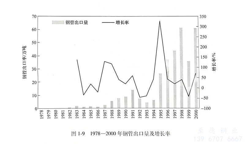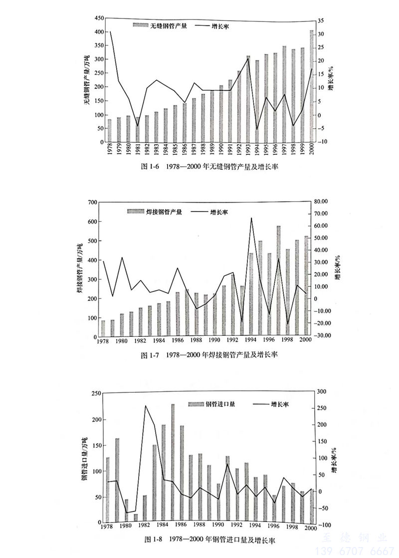 1978-2000年不銹鋼(gang)(gang)管(guan)(guan)產(chan)量(liang)、不銹鋼(gang)(gang)無縫管(guan)(guan)產(chan)量(liang)、不銹鋼(gang)(gang)焊(han)接鋼(gang)(gang)管(guan)(guan)產(chan)量(liang)增長趨勢(shi)圖(tu)見(jian)圖(tu)1-5~圖(tu)1-7,鋼(gang)(gang)管(guan)(guan)進口量(liang)、出口量(liang)增長趨勢(shi)圖(tu)見(jian)圖(tu)1-8、圖(tu)1-9所示。