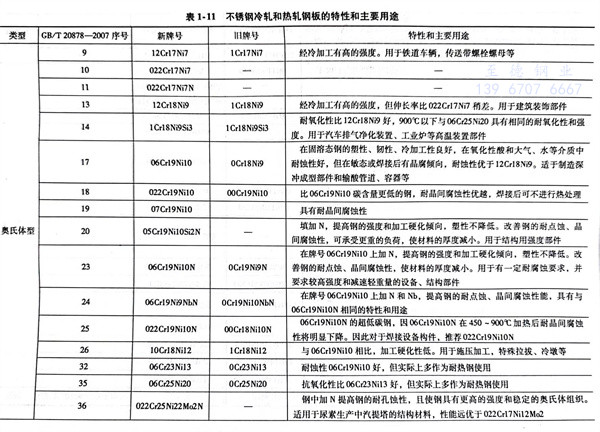 不銹鋼冷軋和熱(re)軋鋼(gang)板(ban)的特性和主要用途(見表1-11)