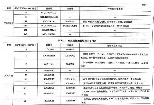 耐熱鋼板的特性和(he)主要用途見表1-12。
