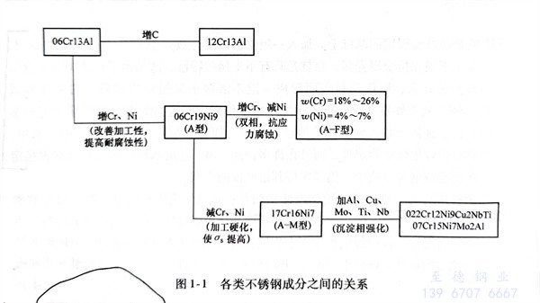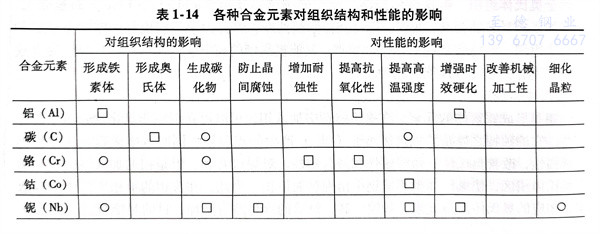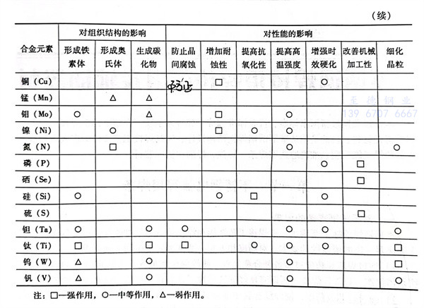 上述合金(jin)(jin)元(yuan)(yuan)(yuan)素(su)對(dui)(dui)鋼(gang)(gang)的(de)(de)(de)(de)(de)(de)作(zuo)(zuo)用不(bu)是(shi)簡單(dan)的(de)(de)(de)(de)(de)(de)疊(die)加(jia),也(ye)不(bu)是(shi)相互(hu)抵消的(de)(de)(de)(de)(de)(de)。它(ta)們相互(hu)之間有時(shi)會發生(sheng)新的(de)(de)(de)(de)(de)(de)物(wu)理化(hua)學(xue)作(zuo)(zuo)用,往往會引(yin)起強化(hua)力(li)學(xue)性(xing)能(neng)(neng)的(de)(de)(de)(de)(de)(de)作(zuo)(zuo)用。各種(zhong)合金(jin)(jin)元(yuan)(yuan)(yuan)素(su)對(dui)(dui)不(bu)銹鋼(gang)(gang)組織結構和性(xing)能(neng)(neng)的(de)(de)(de)(de)(de)(de)影響(xiang)見(jian)表1-14,亦可見(jian)圖1-1、圖1-2。從表中可以看出,合金(jin)(jin)元(yuan)(yuan)(yuan)素(su)對(dui)(dui)不(bu)銹鋼(gang)(gang)組織的(de)(de)(de)(de)(de)(de)影響(xiang)基本(ben)上分三大類(lei):第一類(lei)是(shi)形成鐵素(su)體(ti)(ti)的(de)(de)(de)(de)(de)(de)元(yuan)(yuan)(yuan)素(su),有鉻、硅、鋁、鉬、鈦、鈮(ni)(ni)等(deng)(deng);第二類(lei)是(shi)形成奧(ao)氏(shi)體(ti)(ti)的(de)(de)(de)(de)(de)(de)元(yuan)(yuan)(yuan)素(su),有碳、氮、鎳、錳、銅等(deng)(deng),其中碳和氮的(de)(de)(de)(de)(de)(de)作(zuo)(zuo)用程度(du)最大;第三類(lei)是(shi)形成碳化(hua)物(wu)的(de)(de)(de)(de)(de)(de)元(yuan)(yuan)(yuan)素(su),有鈮(ni)(ni)、鈦、碳、鉻、鎢(wu)、錳、鉬等(deng)(deng)。加(jia)入銅、鋁、鈦、鈮(ni)(ni)、氮等(deng)(deng)元(yuan)(yuan)(yuan)素(su)能(neng)(neng)促使鋼(gang)(gang)產生(sheng)彌散硬化(hua),從而提高鋼(gang)(gang)的(de)(de)(de)(de)(de)(de)熱(re)強性(xing)。