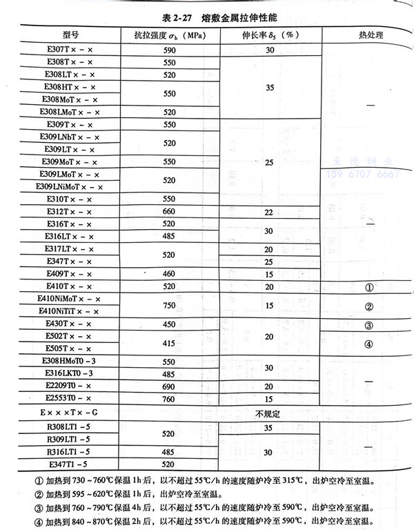 不同(tong)型號焊絲施(shi)焊后的(de)熔敷金(jin)屬化學成分(fen)應(ying)符合(he)(he)表 2-26 和熔敷金(jin)屬拉伸性能應(ying)符合(he)(he)表 2-27的(de)規定。