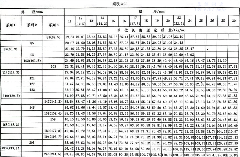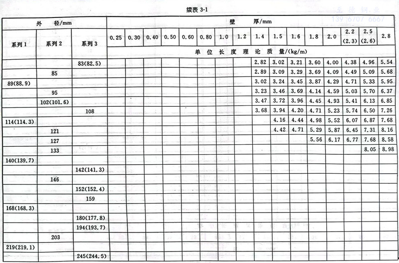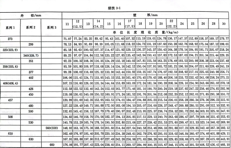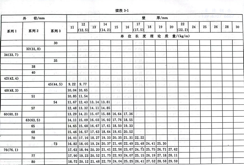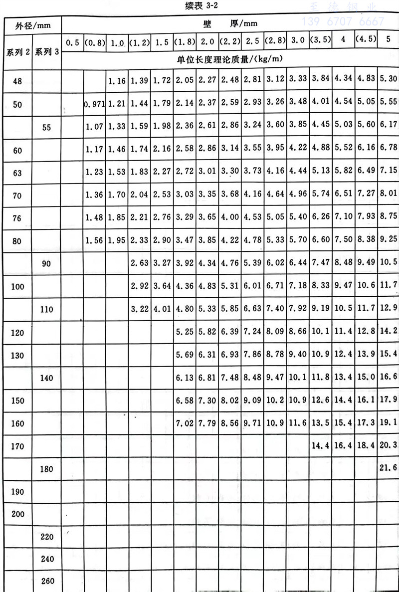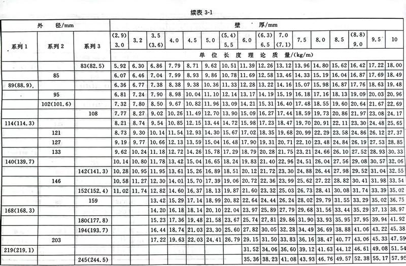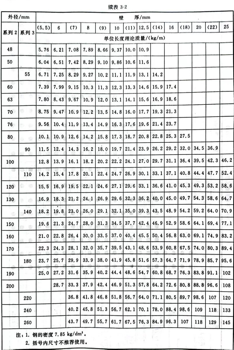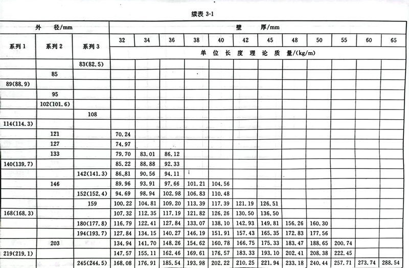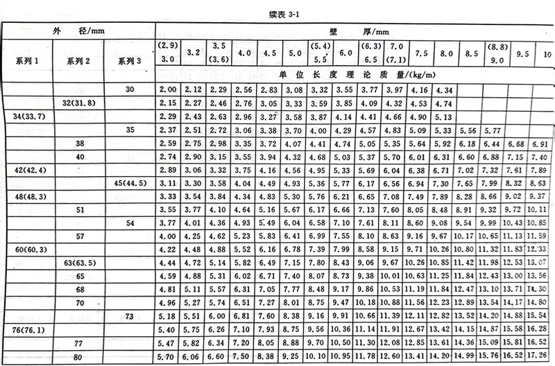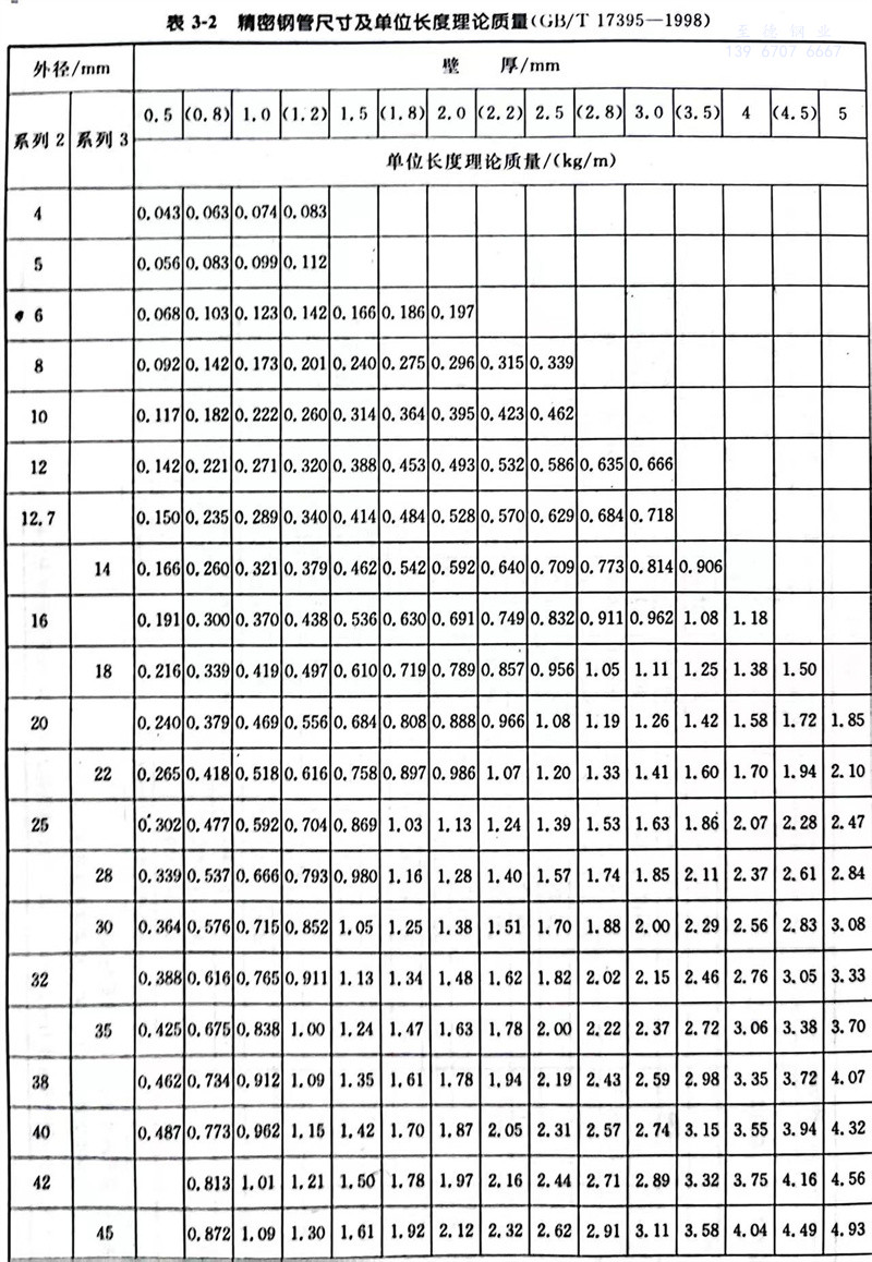 精密鋼管尺(chi)寸及單位長(chang)度理論質量(liang)見表3-2。