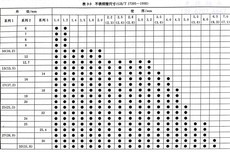 不(bu)銹鋼管(guan)外徑分為系列1、系列2和系列3,詳見表3-3。