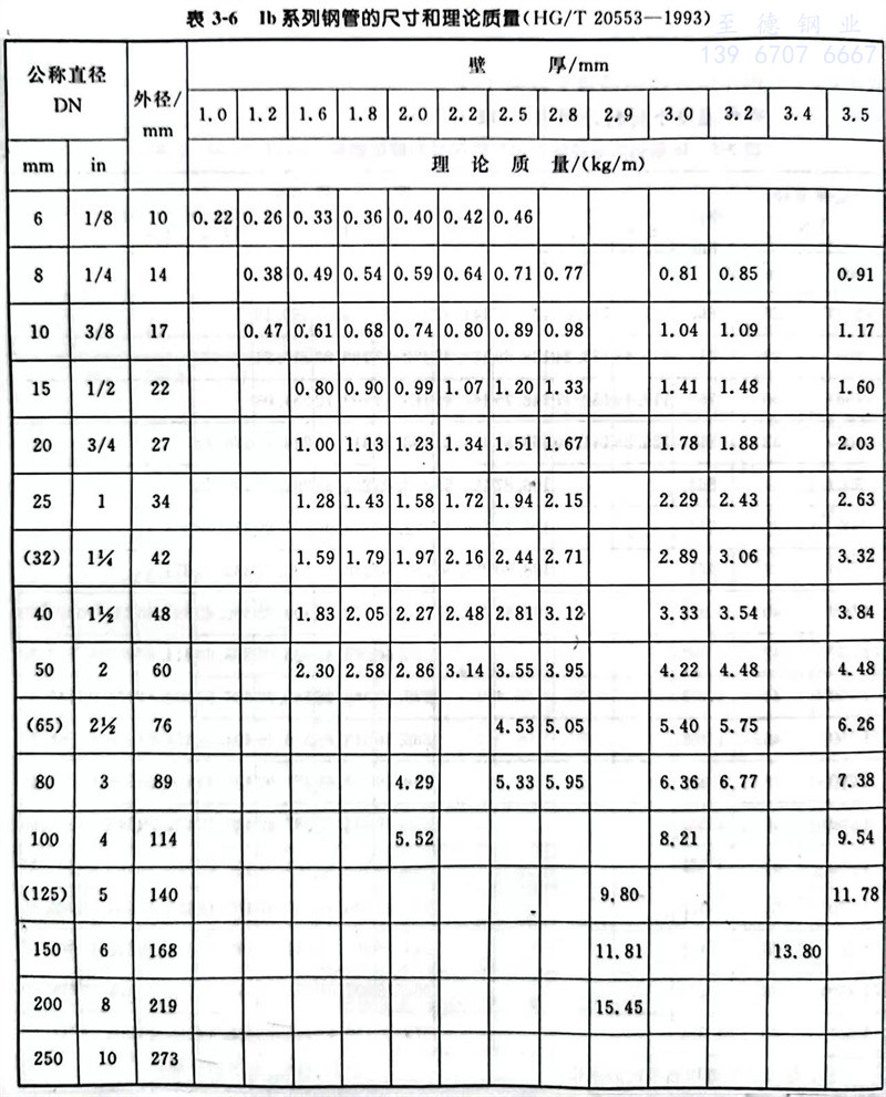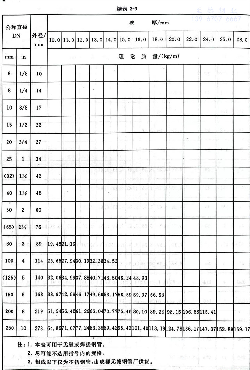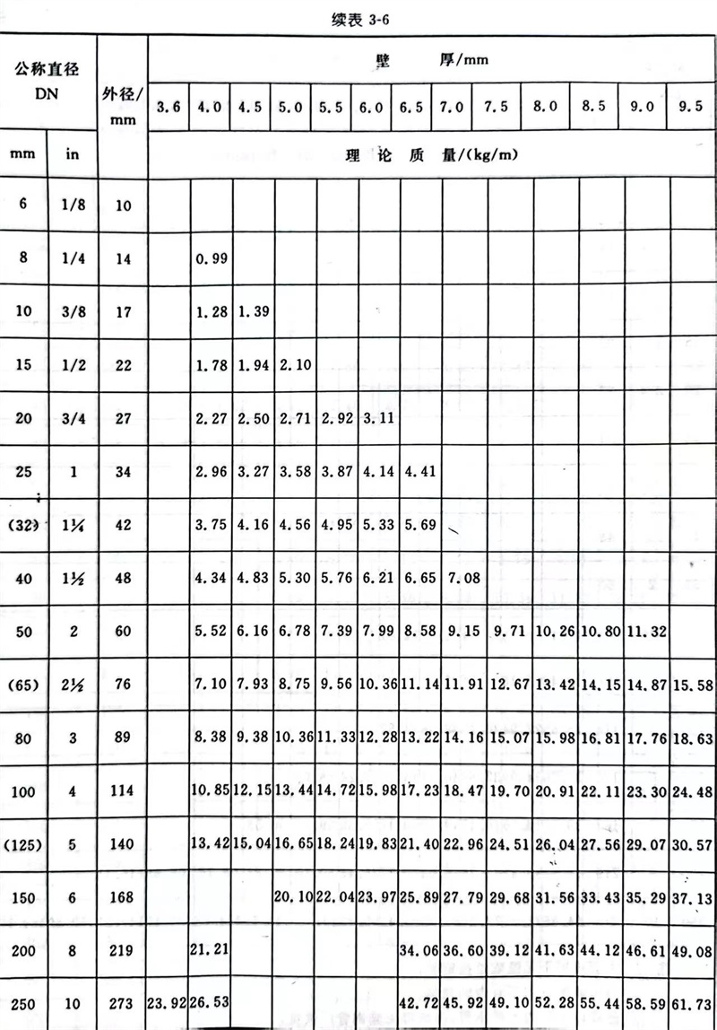 Ⅰb系(xi)列(lie)鋼(gang)管的尺寸和理論質量見表3-6。