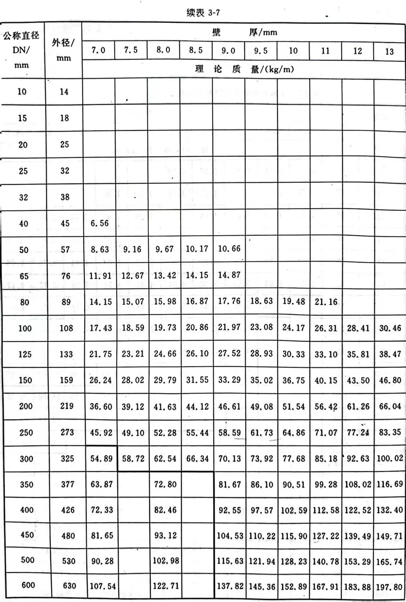 Ⅱ系(xi)列大直徑焊接鋼管的尺寸和(he)理論質量見表3-8。